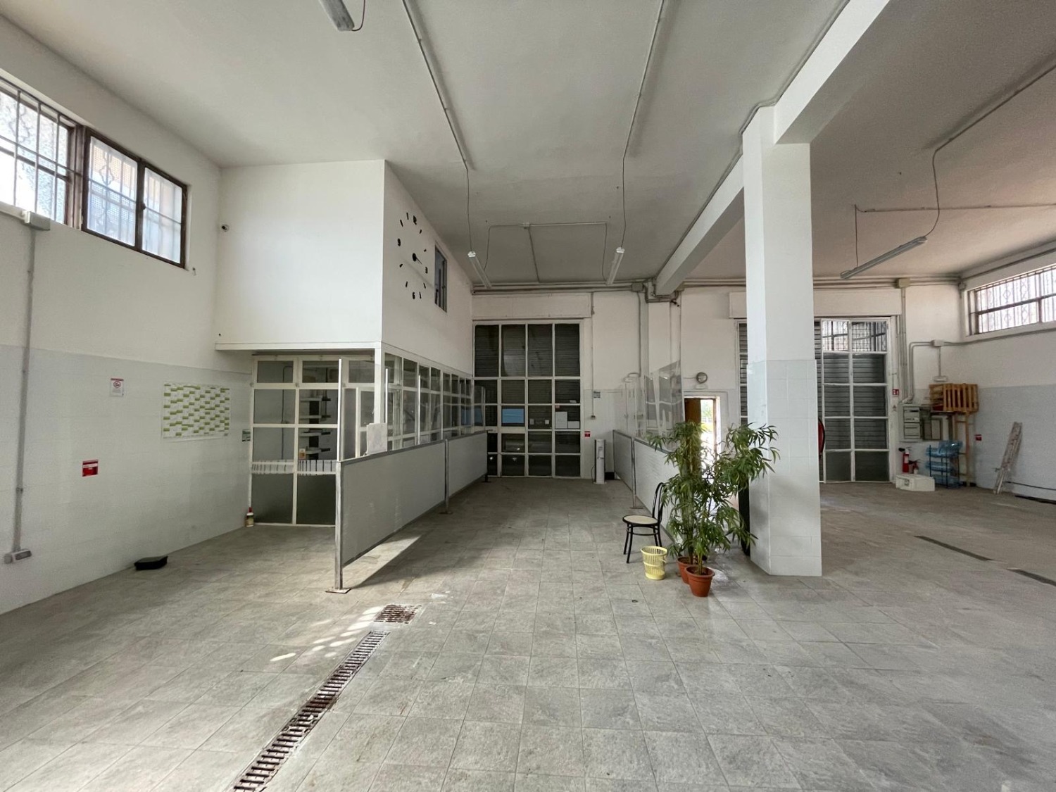 DISPONIAMO -- Di un Capannone C/1. MQ. 386 CIRCA H 4,90. Composto da un unico ambiente, un piccolo Ufficio con CONDIZIONATORE - Bagno e Antibagno - Spogliatoio - Impianto Elettrico funzionante - Due Serrande che potrebbero permettere anche l'accesso all'interno del locale con furgoni per carico e scarico merci. Antistante l'immobile, parcheggio privato e lateralmente una Corte recintata. - Dotato di ampie vetrate che garantiscono un'ottima luminosità, permettendo di sfruttare al massimo la luce naturale nell'arco della giornata.